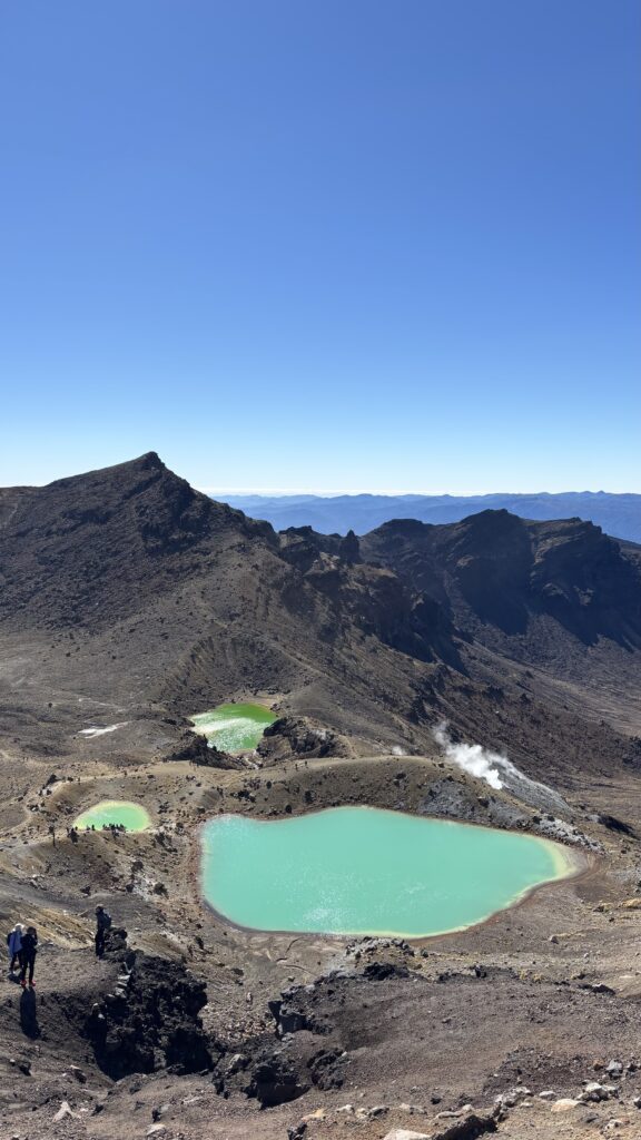 The Emerald Lakes appear in unreal shades of green, surrounded by a raw volcanic landscape that feels almost surreal. It’s not hard to understand why this area was used in The Lord of the Rings film trilogy as Mordor.